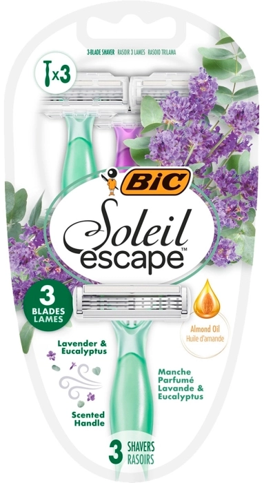 Soleil Escape maquinillas depilatorias desechables 3 hojas con lavanda y eucalipto blister 3 unidades