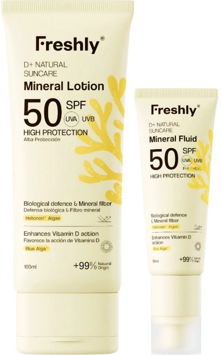 Protege tu piel facial y corporal del daño solar, sin utilizar filtros químicos ni nanopartículas. Este pack ofrece alta fotoprotección SPF 50, con una fórmula segura y avanzada: combina un núcleo de protección 100% mineral, a base de óxido de zinc de excelente tolerancia, con filtros biológicos patentados Helionori®. Además, incrementa los receptores de vitamina D de la piel gracias al exclusivo complejo de Blue Alga.