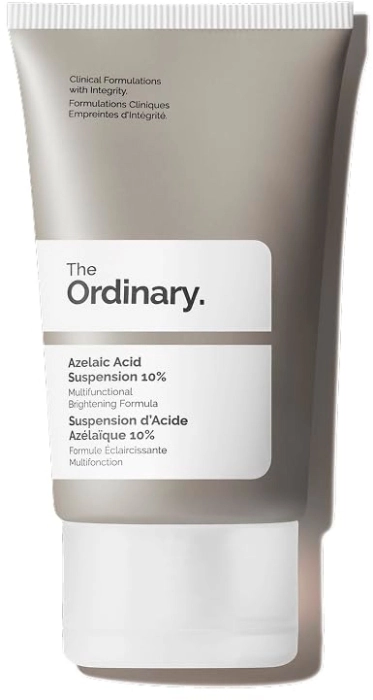 Azelaic Acid Suspension 10% es una fórmula similar a una crema que ilumina el tono de la piel y mejora de forma visible su textura gracias a la elevada concentración de Azelaic Acid, un antioxidante natural y eficaz que se encuentra en los cereales. Su potencial de irritación es más bajo que el de otros ácidos, por lo que resulta lo suficientemente suave para su uso diario como parte de un régimen de cuidado de la piel.