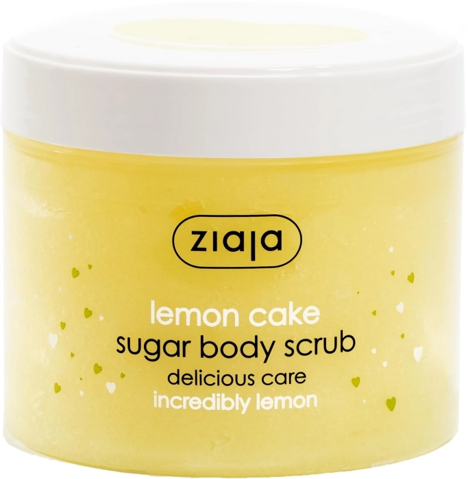 Exfoliante corporal de azúcar con increíble aroma a pastel de limón.